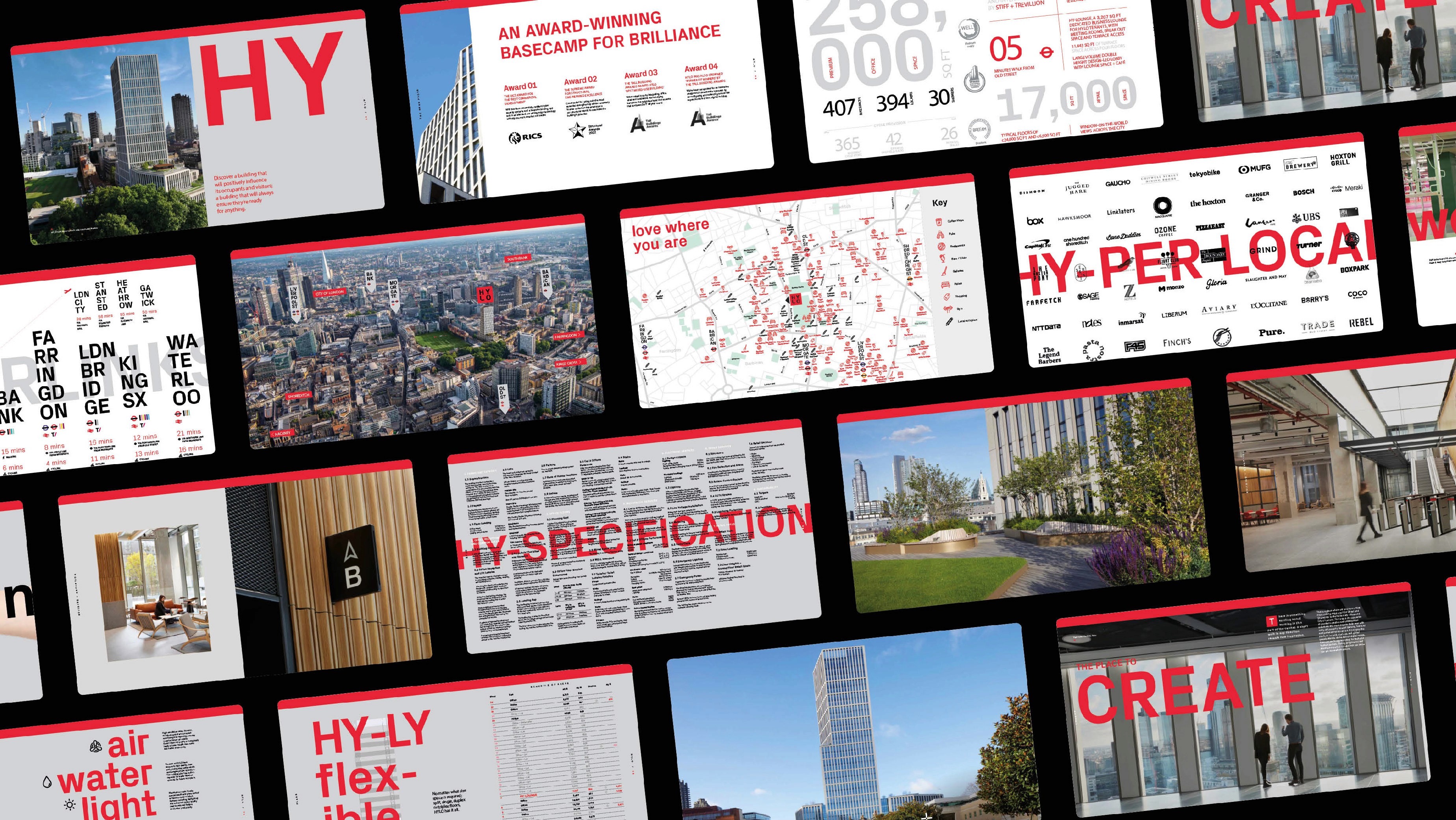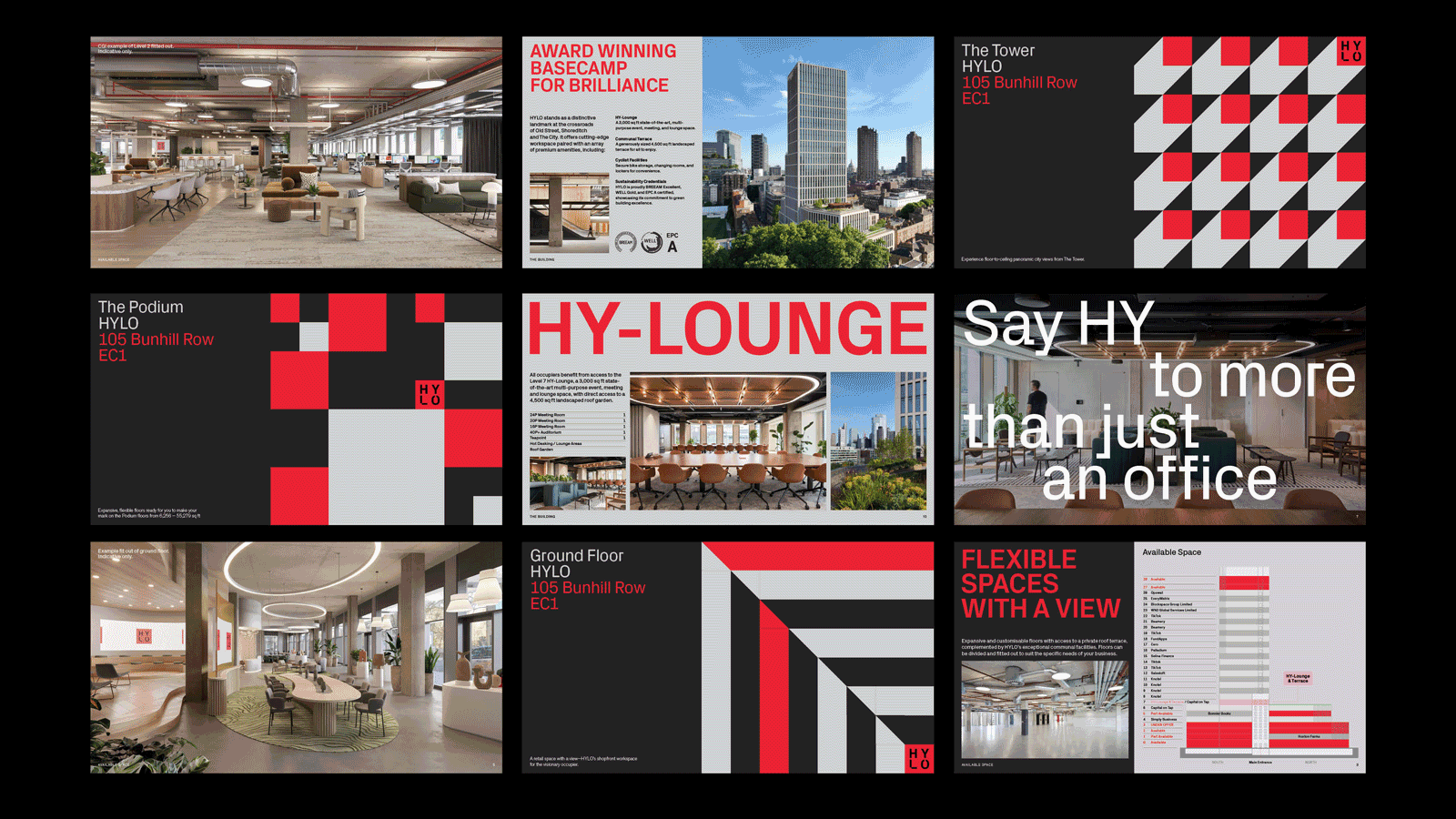 visual identity that reflects the building’s red hot ambition — from light-filled workspaces and collaborative lounges to rooftop gardens and generous public realm. Confident, energised messaging and purposeful visuals capture HYLO’s